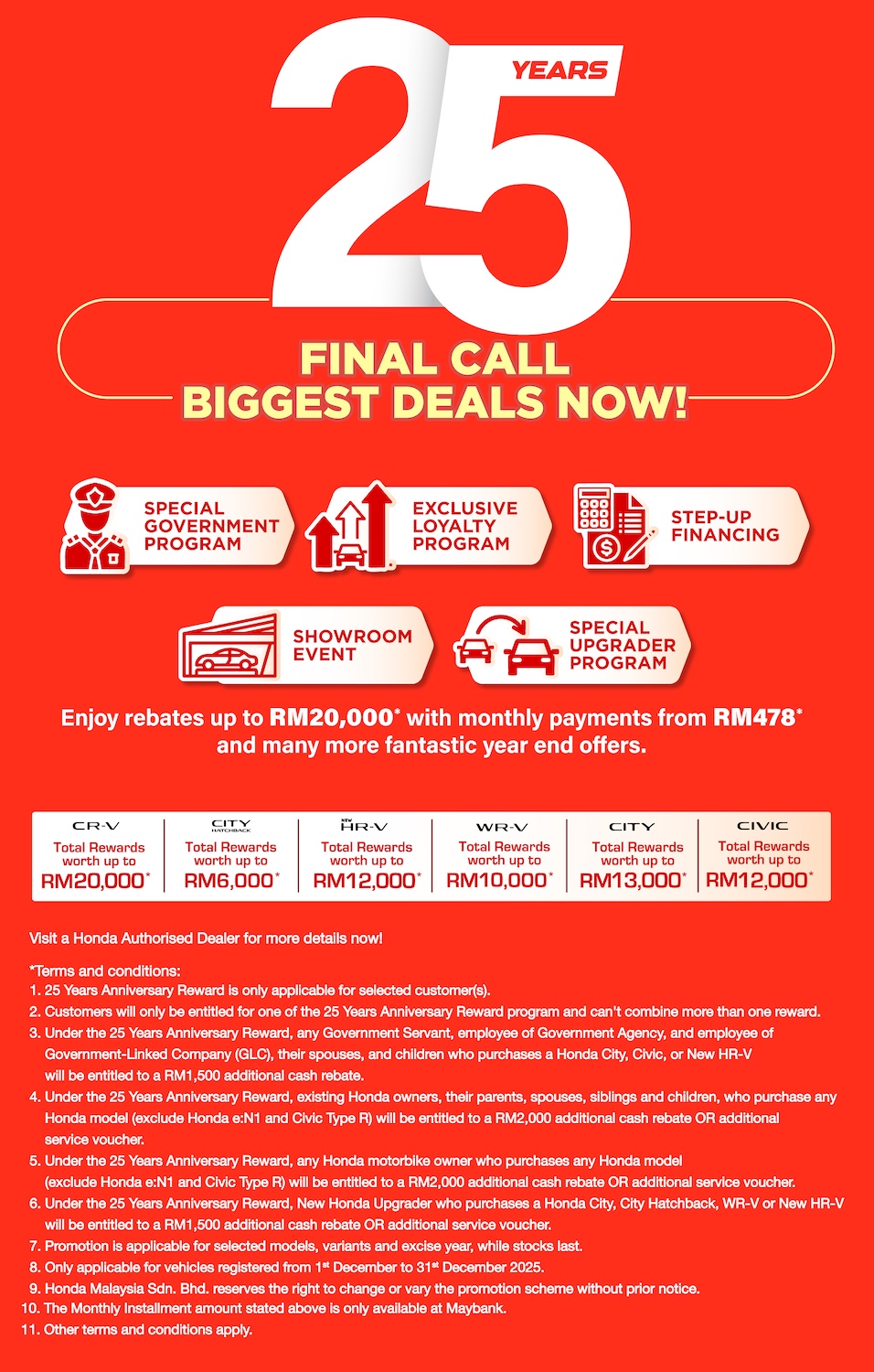 Kempen Honda 25 Years: Final Call Biggest Deals Now! adalah tawaran paling besar Honda untuk 2025, dengan: