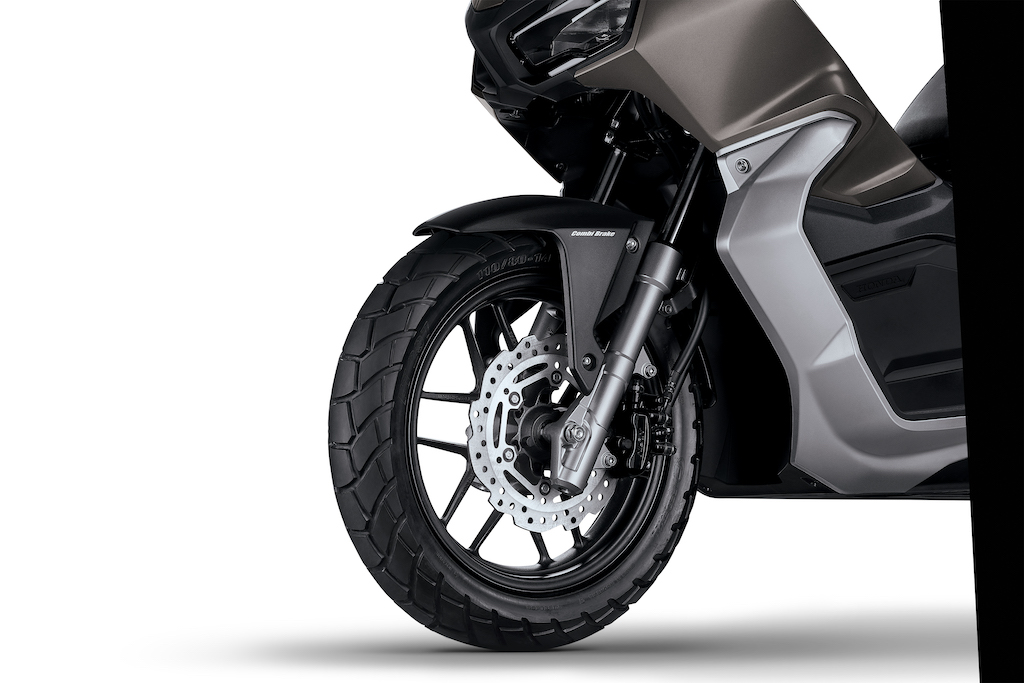 - Menggunakan tayar lebar jenis tiubles bersaiz 110/80 14M/C 53P (depan) dan 130/70 13M/C 57P (belakang).
