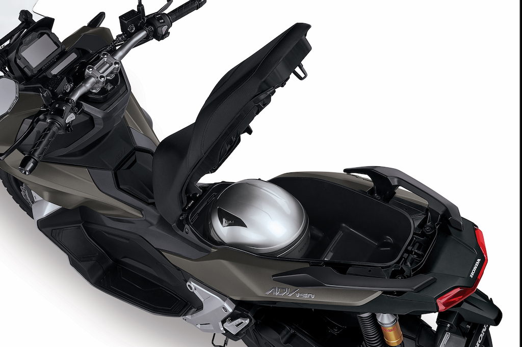- Memiliki luas simpanan bawah pelana 27.8 liter yang mampu mengisi satu helmet dan barangan kecil. Juga ada soket kuasa pada kotak konsol depan yang boleh digunakan untuk mengecas telefon pintar atau peranti elektronik lain.