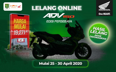Harga lelongan ADV 150 edisi ‘Persebaya’ itu bermula Rp19.3 juta (RM5,417) dan seluruh hasil lelongan akan disalurkan sebagai dana kebajikan menangani Covid-19 di Surabaya. Pemenang akan mendapat jersi rasmi Persebaya.