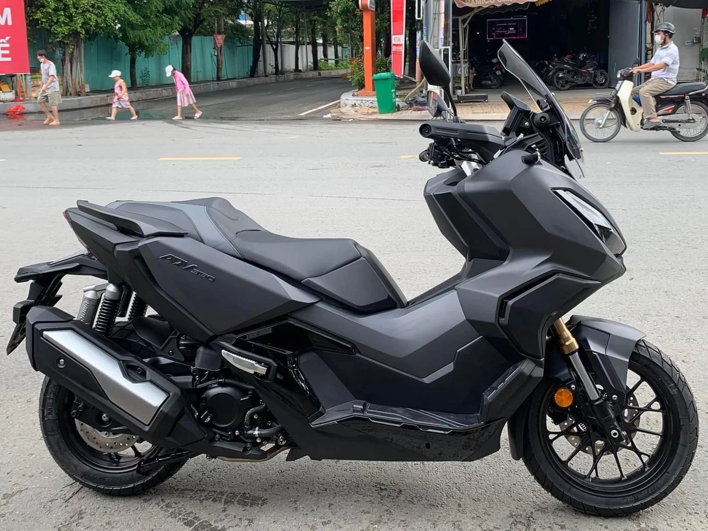 - ADV 350 di Vietnam ini dalam warna hitam dengan rekabentuk bersegi.