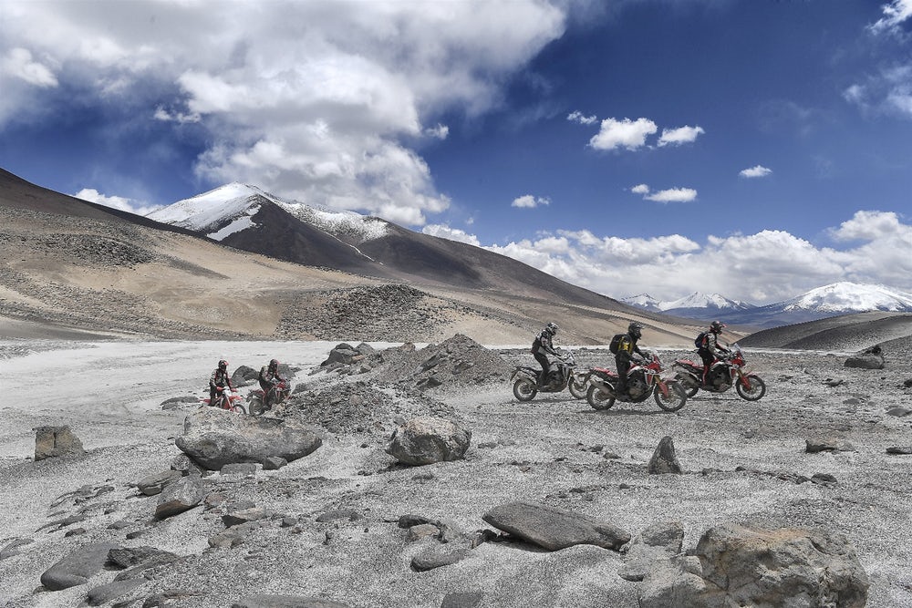 Laluan dilalui nyata mencabar dengan suhu -5°C dengan pelbagai rupa bentuk bumi mencabar seperti jalan merekah, berlumpur dan berpasir sebelum meredah laluan terakhir yang bersalji, dikenali penitentes, yakni menegak dan tajam. Kawasan mencabar seumpama itu sengaja dipilih semata-mata bagi membuktikan kemampuan motosikal Honda Africa Twins.