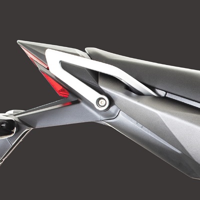 - Menggunakan pelana panjang untuk ergonomik tunggangan terbaik. Sistem suspensi monoshock belakang pula menambah baik aspek kestabilan dan keselesaan menunggang.