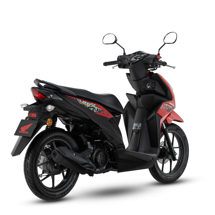 Selain warna, grafik Honda BeAT (2023) juga diperbaharui dengan visual lebih sporty dan moden bagi menarik minat penunggang muda yang mahukan skuter penuh gaya dan mudah ditunggang.