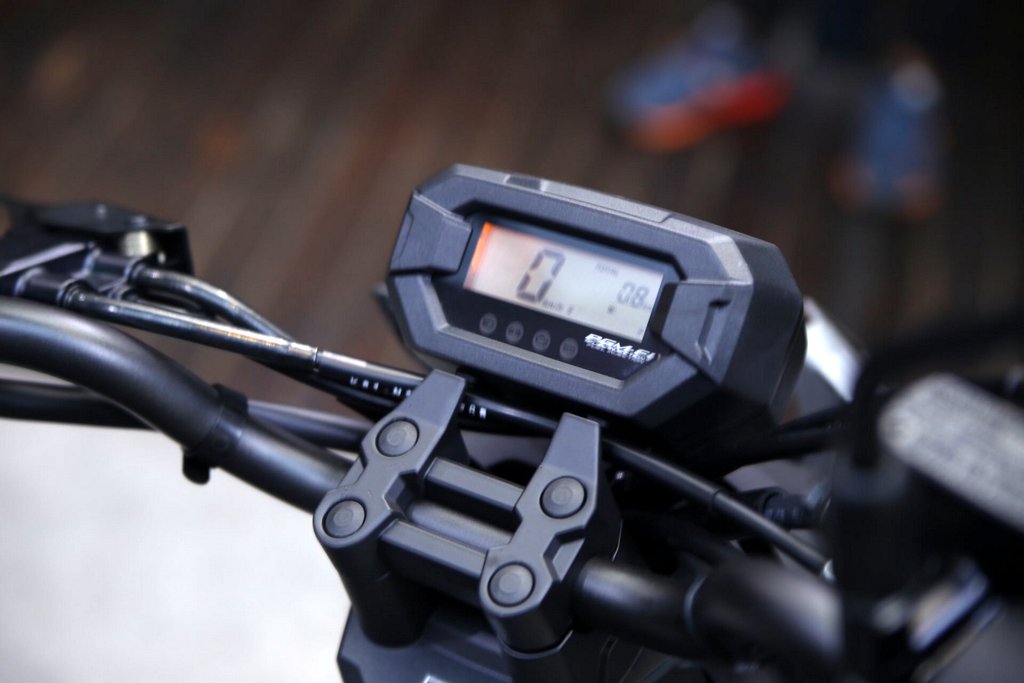 - Bahagian speedometer berubah berbentuk kotak dengan paparan digital sepenuhnya. Latar LCD berwarna oren terang memudahkan penunggang untuk melihat informasi yang disediakan.