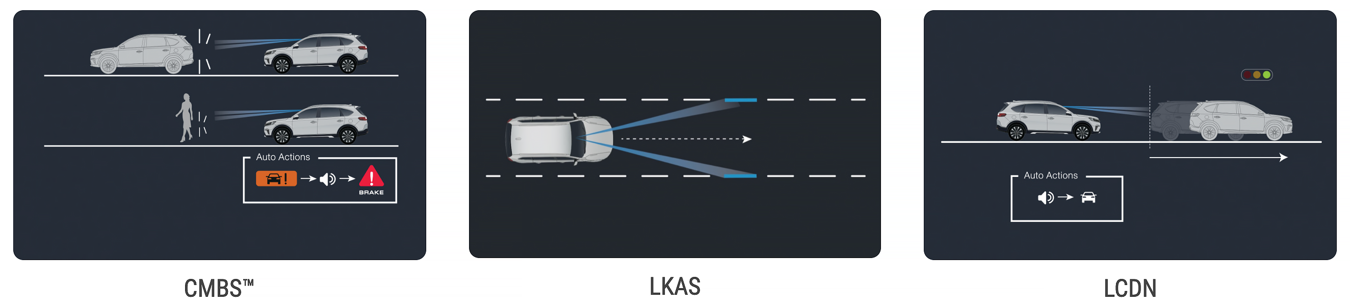 - Ciri keselamatan standard dilengkapi 4 beg udara, Sistem Brek Anti-Kunci (ABS) dengan Agihan Brek Elektronik (EBD), Bantuan Stabiliti Kenderaan (VSA), Bantuan Mula Daki (HSA), pautan kerusi kanak-kanak ISOFIX, tali keledar prategang dengan pengehad beban, imobiliser