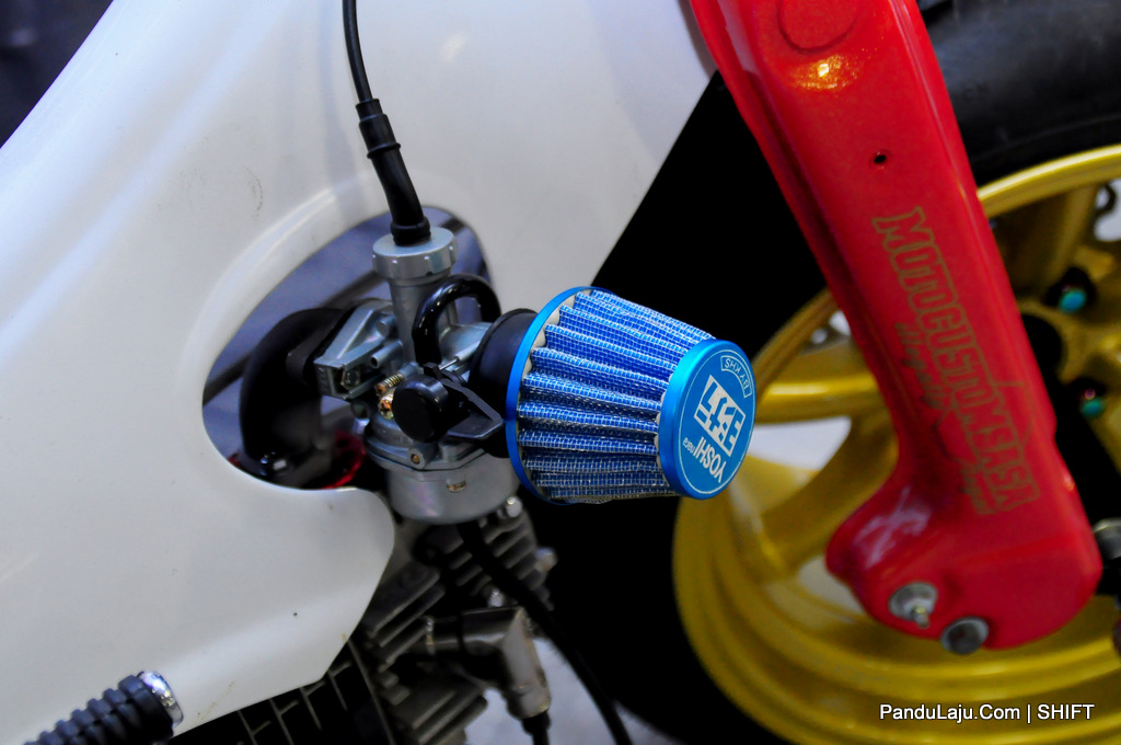 Bagi memastikan ia lebih kukuh dan stabil, pemiliknya menambah swing arm pada badan jentera dan kemudian disambungkan kepada suspensi monoshock. Tempat duduk pula direka khas dengan mementingkan aspek keselesaan.