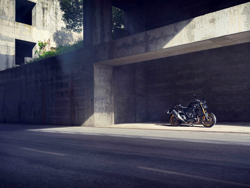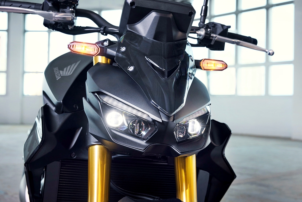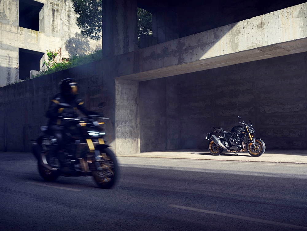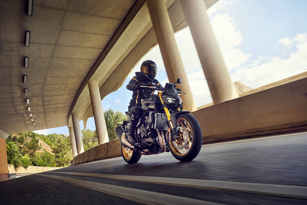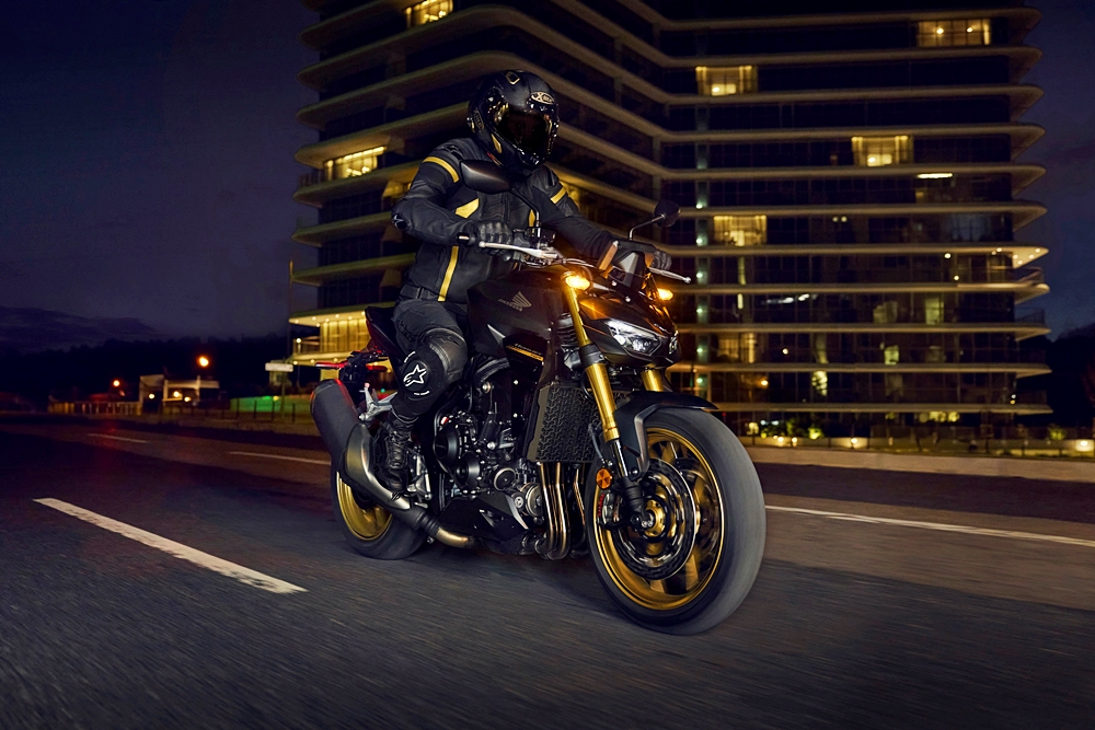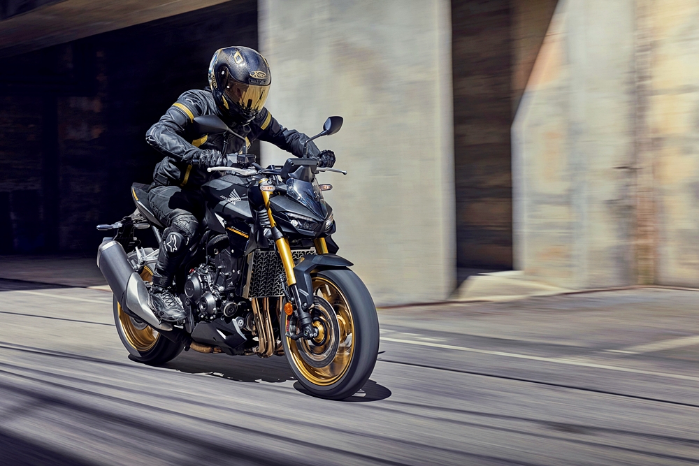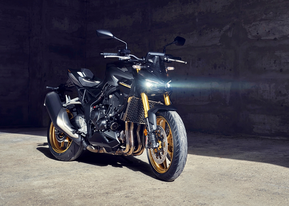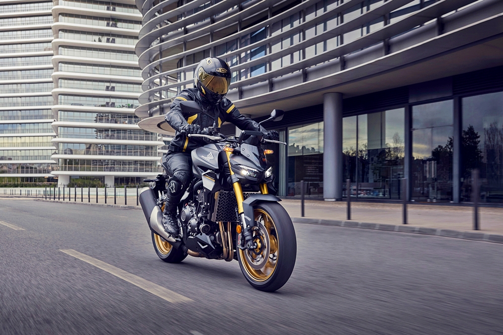 Honda CB1000 Hornet SP 2025 direka di Jepun dan tampil agresif. Dua perbezaan utama berbanding Honda CB1000 Hornet biasa boleh diihat pada sepit udang emas dan kaliper brek Brembo di depan.