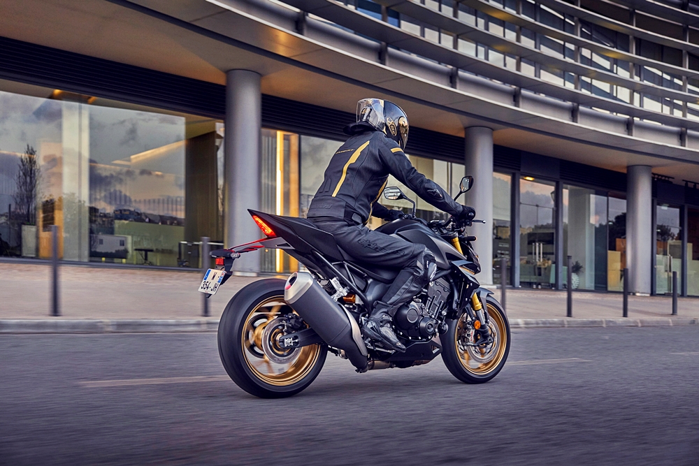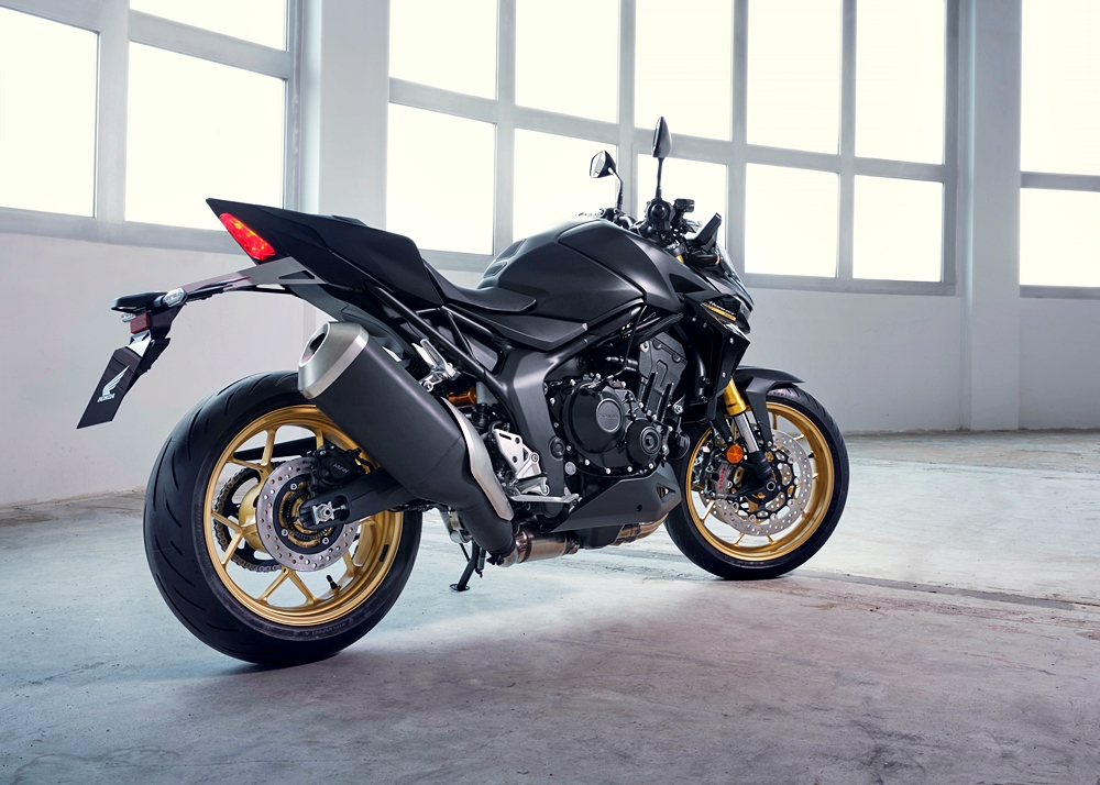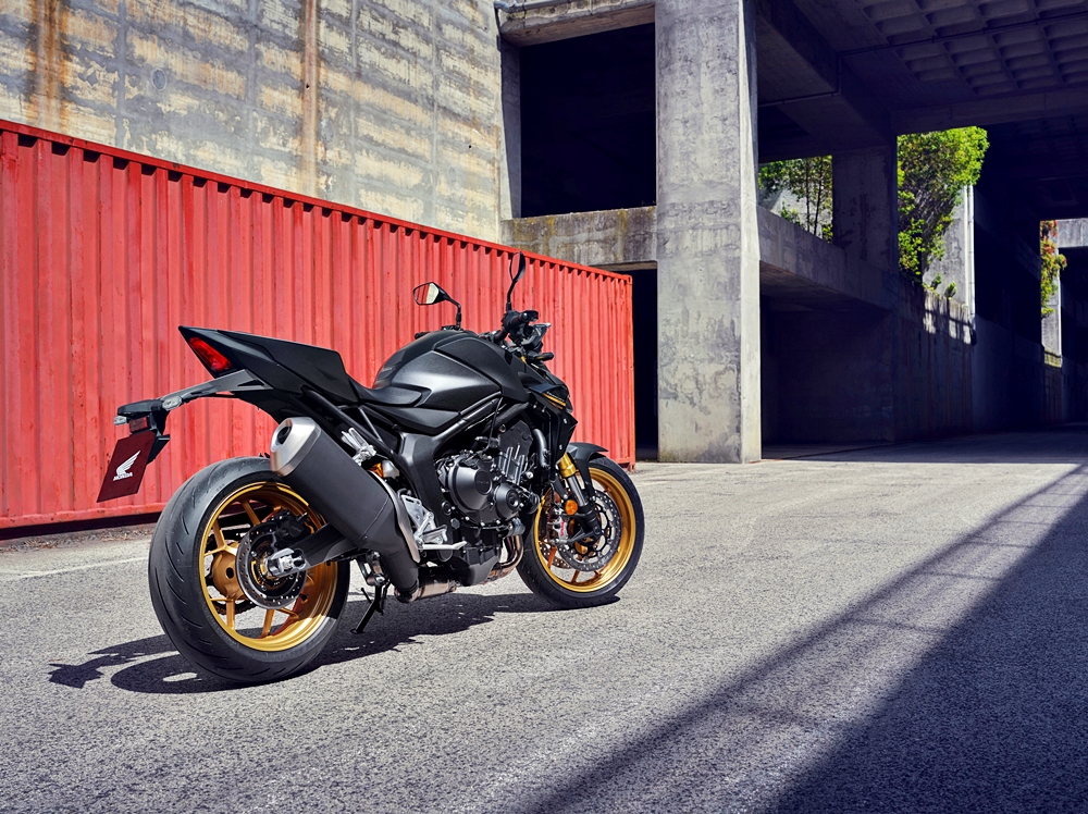 Berbeza CB1000 Hornet dengan tiga warna, model ini ditawarkan khas dalam warna Mat Ballistic Black Metallic (hitam) dengan rim Desert Gold Metallic (emas).