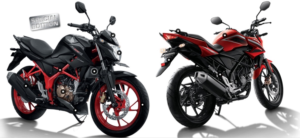 Honda CB150R StreetFire Special Edition – Honda Racing Red dilengkapi frem dan rim hitam yang turut dipadankan dengan strip merah-putih sekeliling bingkai rim untuk lebih karakter sporty. Warna Raptor Black pula memiliki frem dan rim merah serta enjin berwarna emas. Bagi meningkatkan penampilan agresif model naked bike itu, AHM menampilkan visor dan kowl bawah rekaan sporty yang menyempurnakan aerodinamik dan prestasi pengendalian.