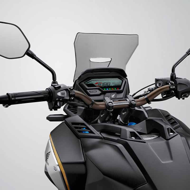 - Menggunakan sistem lampu LED penuh dan hadir dengan visor angin tinggi. Instrumen meter adalah jenis digital penuh.