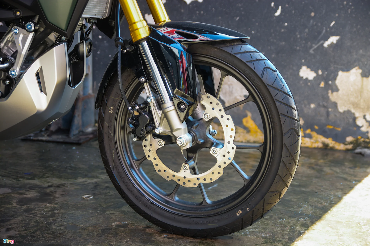 - Sistem henti cakera tunggal dengan kaliper dwi-piston Nissin di depan dan cakera tunggal dengan kaliper Nissin piston tunggal (belakang). Rim aloi 17 inci.
