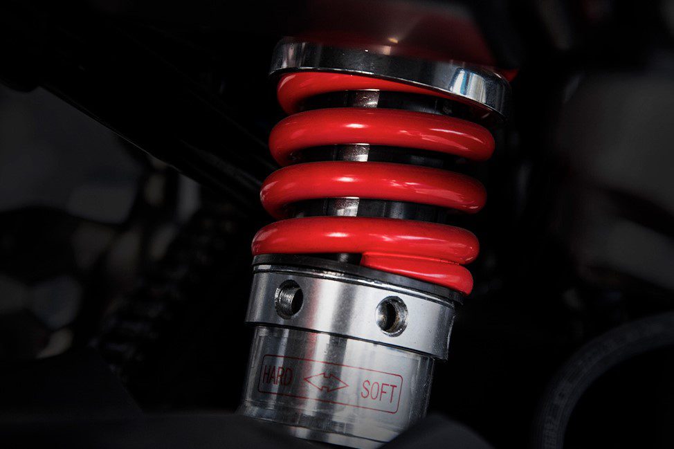 - Sistem suspensi menggunakan fork terbalik (USD) di depan, dan monoshock boleh laras di belakang.