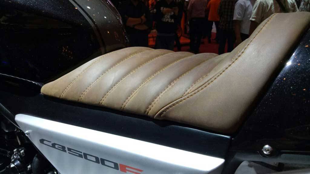 Bahagian tangki masih tetap sama, manakala belakang Honda CB500F Café Racer tampil dengan bentuk bulat cembung. Pelana juga mengalami perubahan total yang mendapat sentuhan kemasan kulit coklat. Tidak berhenti setakat itu, penggunaan warna hitam yang dipadukan dengan sentuhan warna perak nyata menegaskan kesan moden dan elegan.