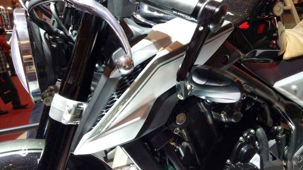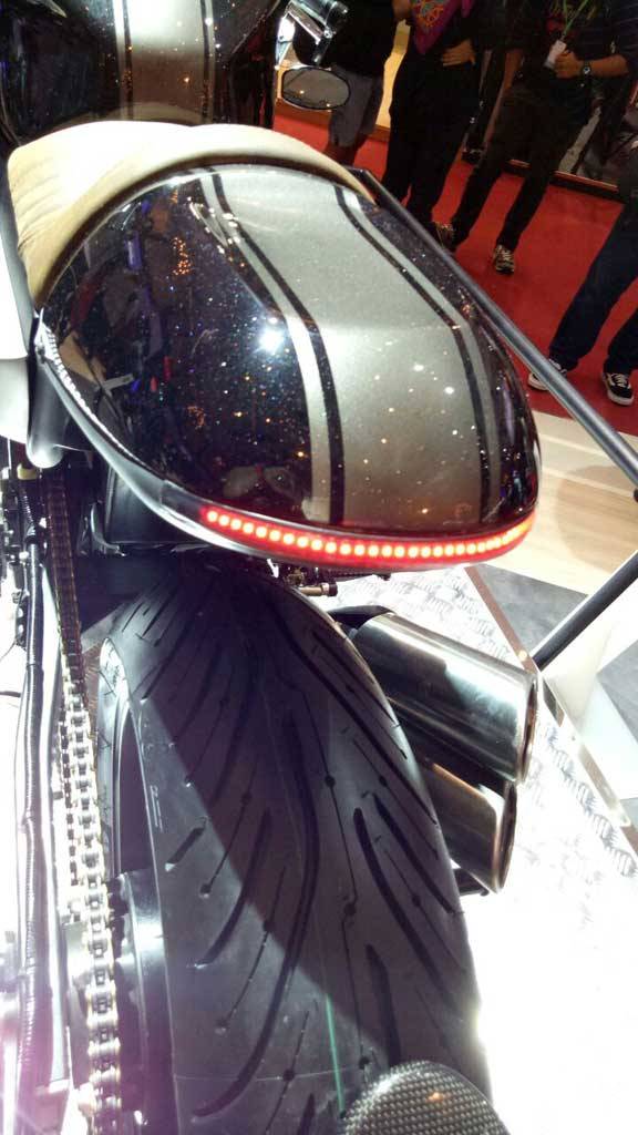 Sentuhan moden boleh dilihat pada lampu depan dan belakang bercirikan LED, meter laju termignoni dan suspensi terbalik daripada Honda CBR1000RR. Penggunaan mufler kustom berkembar menyerlahkan kesan macho yang penuh kelelakian.