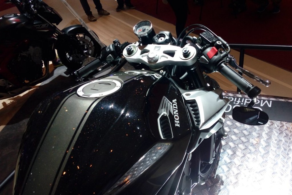 Menarik mengenai Honda CB500F yang dipamerkan di salah satu pameran terbesar motosikal di Indonesia ialah model naked tersebut kini berubah wajah menjadi sebuah café racer. Model asal naked bike yang dilancarkan di Indonesia pada Februari lalu itu menerima kemasan kustom daripada bengkel pakar modifikasi terkenal Jakarta, Baru Motor Sport (BMS) dengan merombak keseluruhan badan Honda CB500F, manakala pakar cat, Tomi Airbrush menyarungkan pakaian baharu menerusi kemasan semburan cat.