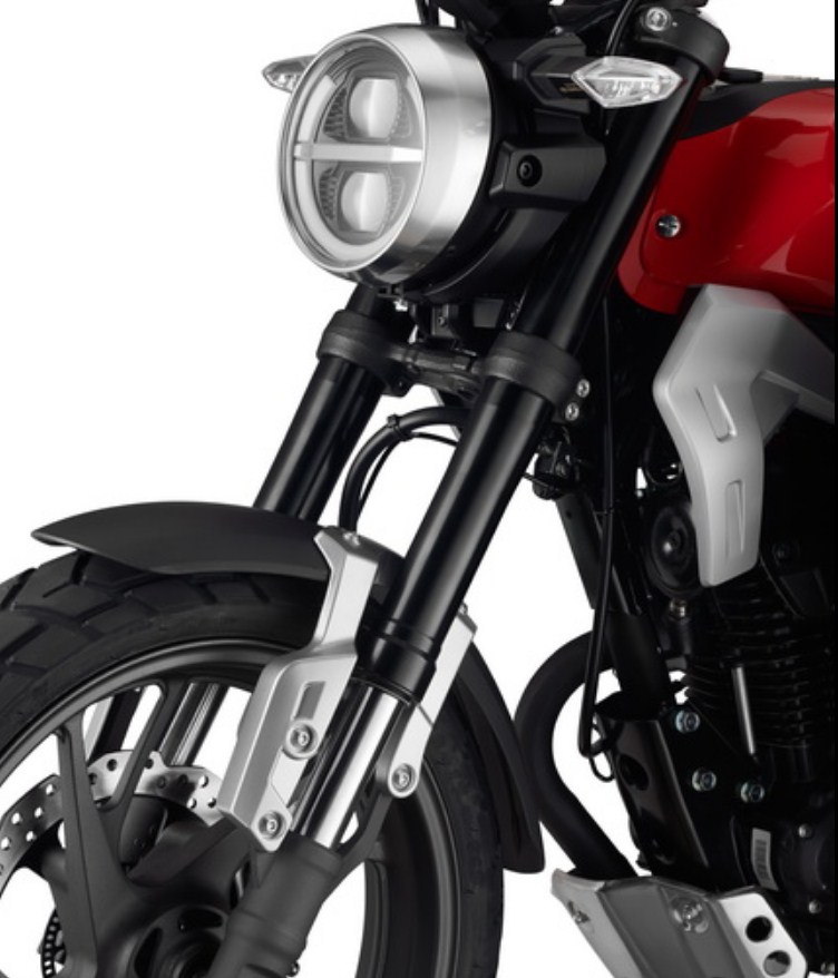 Dari depan CBF190TR, terpampang lampu utama LED bulat, manakala suspensi depan menggunakan fork terbalik (USD). Keyakinan membrek diserahkan kepada brek cakera 2-piston dengan Sistem Brek Anti Kunci (ABS). Rekaan pelana corak timbul menyerlahkan lagi gaya retro model ini.