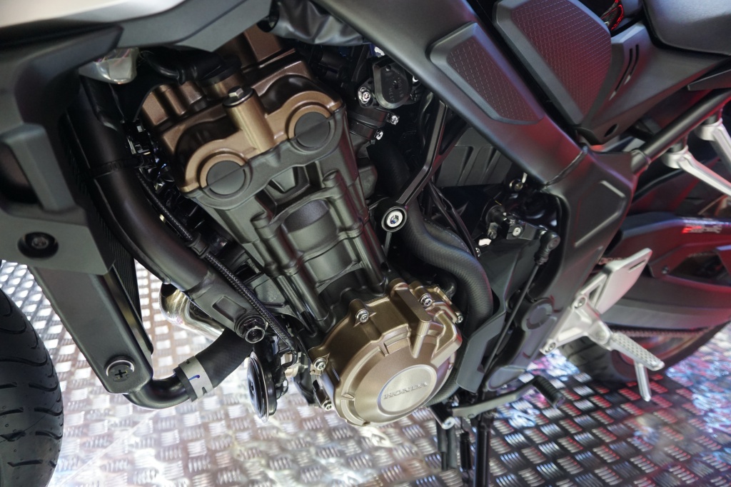 CB650R dijana enjin 16 injap 649cc DOHC berkuasa 93.8hp @ 12,000rpm dan tork 64Nm @ 8,500rpm. Menurut Honda, blok enjin dipertingkat untuk mengurangkan geseran tork pada kitaran 5,500rpm yang memberikan 5 peratus prestasi apabila mencapai rev 10,000rpm.