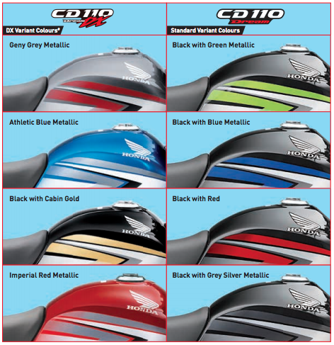 CD 110 Dream varian Standard berharga IND50,028 (RM2,930) dan didatangkan dalam empat pilihan warna: Black with Blue Metallic (hitam+biru metalik); Black with Green Metallic (hitam+hijau metalik), Black with Red (hitam+merah) dan Black with Grey Silver Metallic (hitam+perak kelabu metalik).