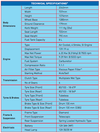 Keupayaan membrek diserahkan kepada unit brek dram 130mm pada kedua-dua roda. Sayangnya pilihan brek cakera tidak ditawarkan. Model baharu inidipadankan rim aloi 18 inci dengan fork teleskopik di depan dan dual spring di belakang. Bagi menyerlahkan imej premium, kemasan krom disisipkan pada bar hendal, pelindung mufler, dan rak belakang.