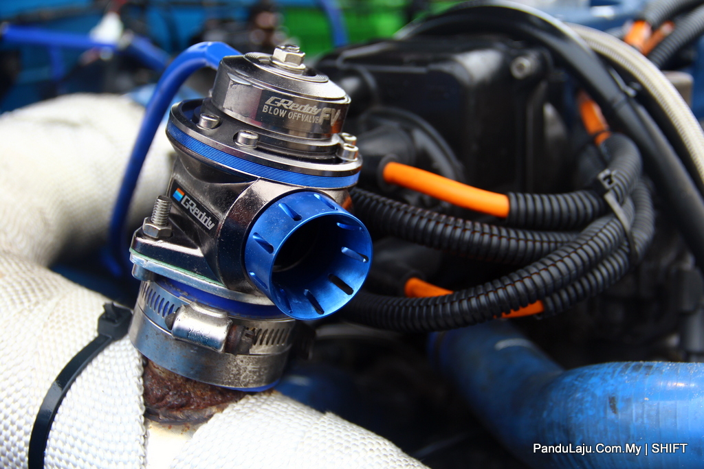 Udara yang disedut masuk akan melalui intercooler AVS terus memasuki ruangan intake. Udara berlebihan pula akan ditolak keluar melalui ‘blow-off’ GReddy yang dipasangkan pada paip laluan udara tersebut.