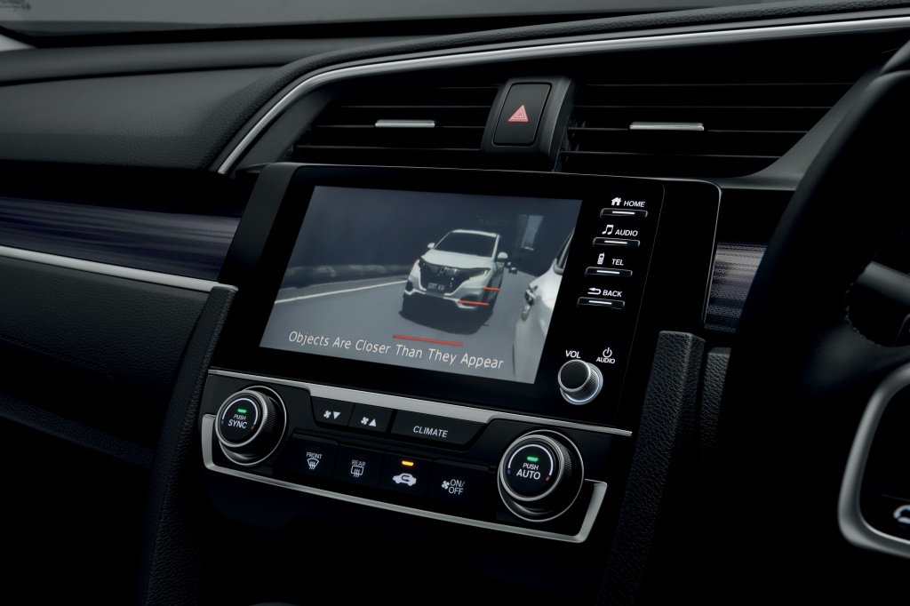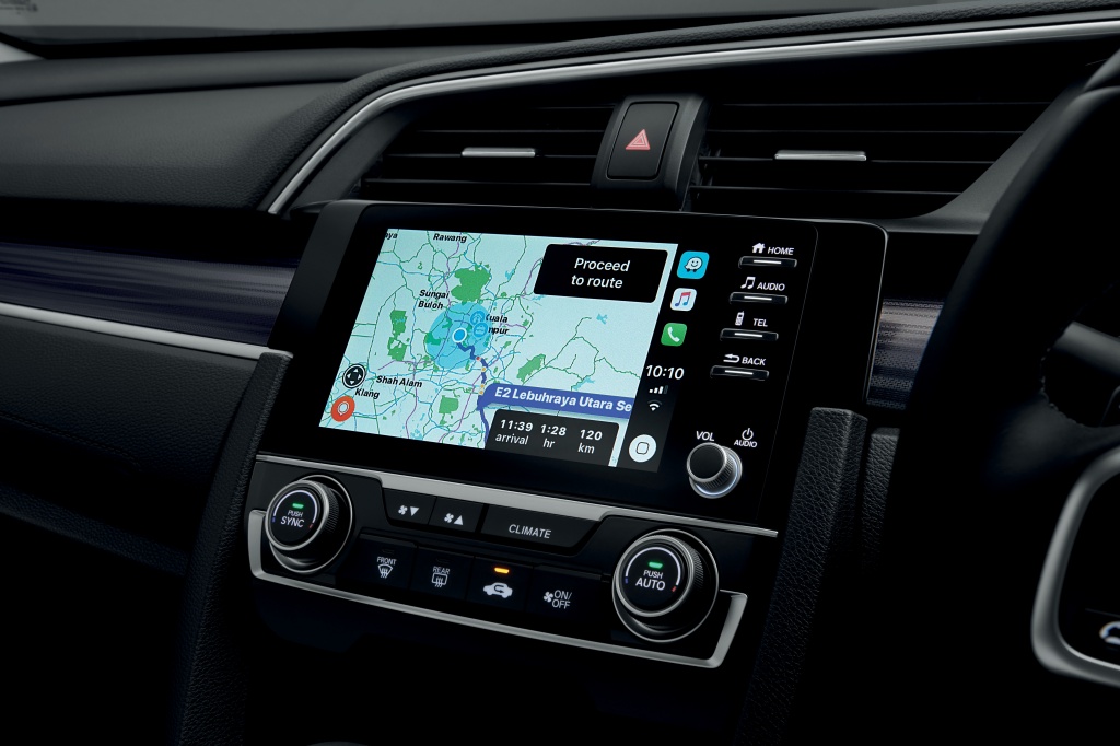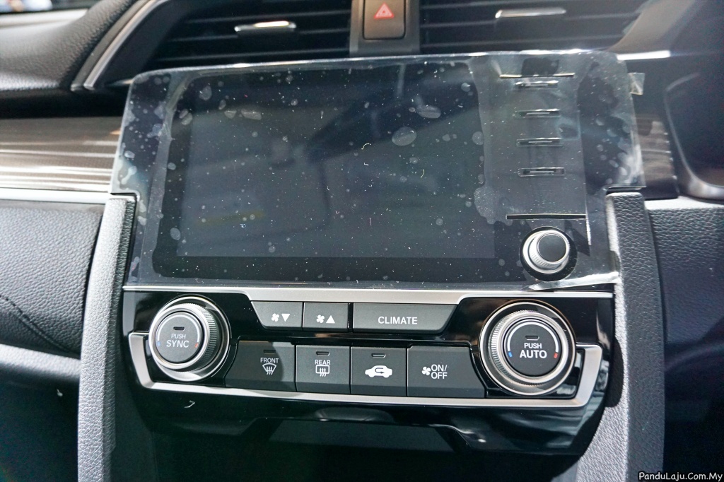 5. Unit infotainment menampilkan paparan 7 inci dengan konektiviti Apple Carplay dan Android Auto. Semua varian Civic ditawarkan dengan port HDMI, 2 slot USB dan lapan pembesar suara.