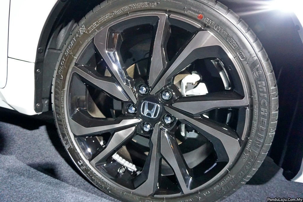 6. Civic facelift dipasangkan set rim aloi 18 inci hitam (235/40), khas untuk varian 1.5 TC-P, manakala varian 1.8S bersaiz 16 inci (215/55) dan 1.5TC (17-inci/ 215/50). Sistem suspensi menggunakan strut Macpherson di depan dan multi-link (belakang).
