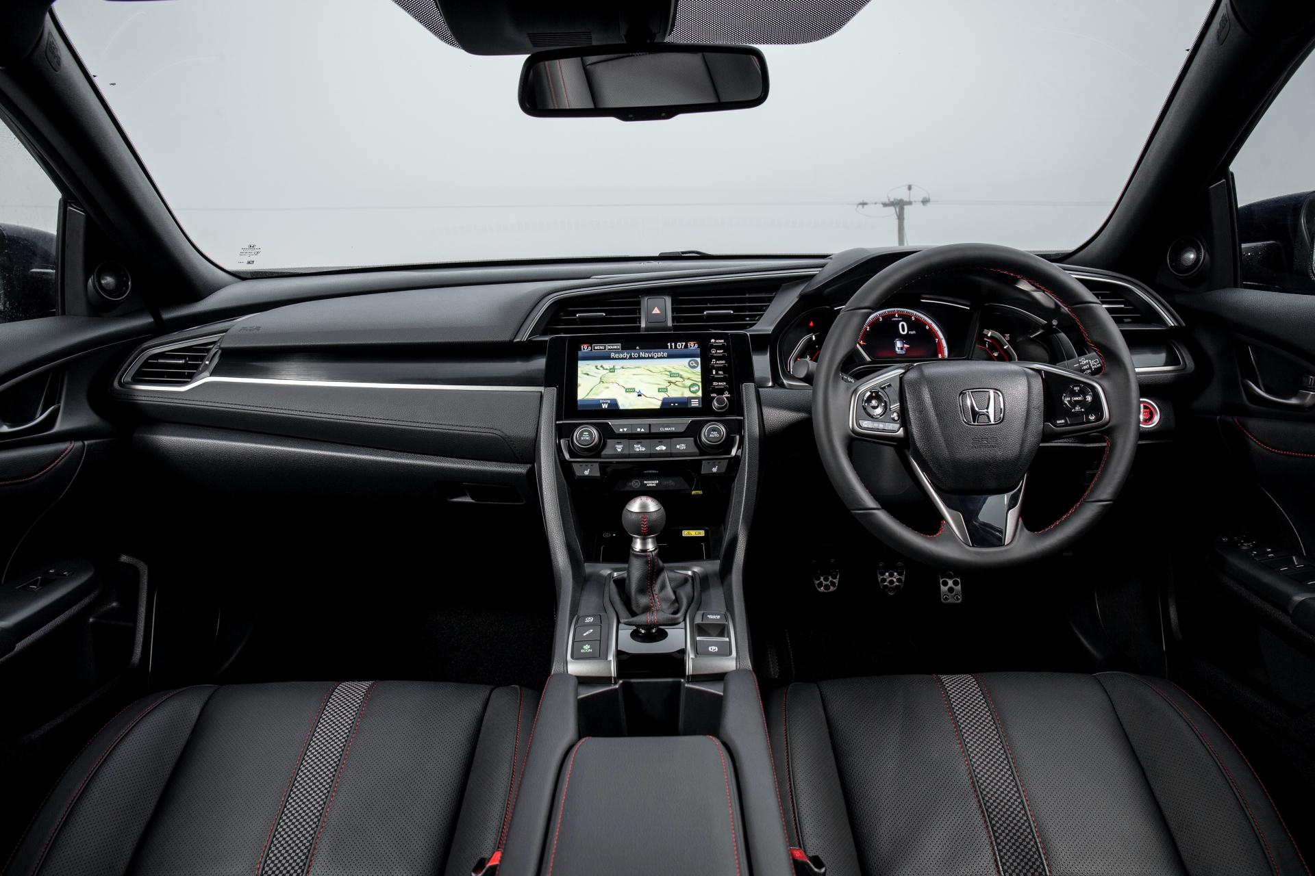 Ruang kabin menampilkan naik taraf gaya sport dengan kemasan sulaman benang merah pada kerusi, stereng, tombol gear, panel pintu dan pedal aluminium, manakala set pedal jenis aluminium lelubang. Ciri standard terdiri daripada sistem infotainment Honda Connect dengan fungsi radio DAB, Apple CarPlay dan Android Auto, manakala varian EX ditambah kamera undur yang disepadukan pada skrin.