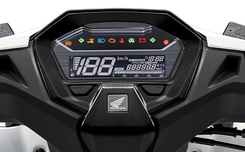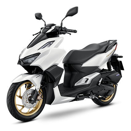 - ABS: Ada dua pilihan warna: hitam dan putih-hitam dengan rim aloi emas.