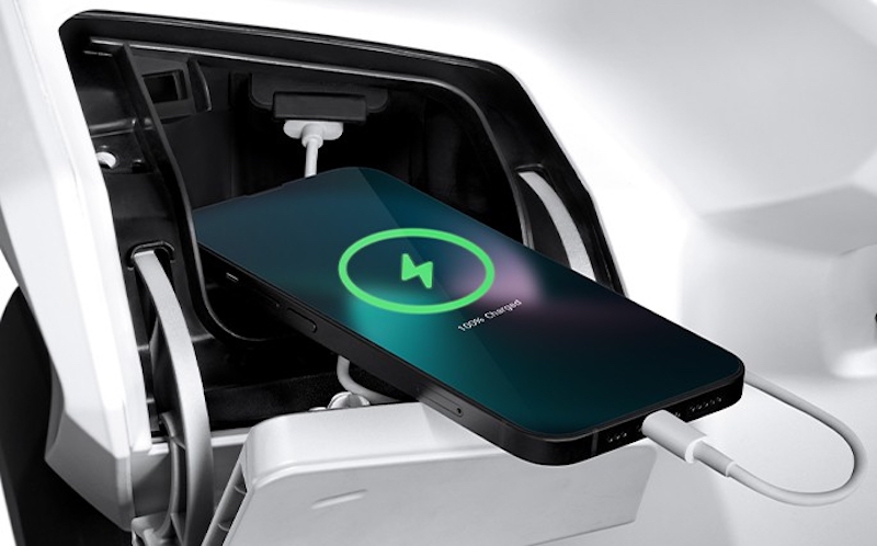 - Ada port pengecas USB- Type A dalam kotak storan panel skuter.