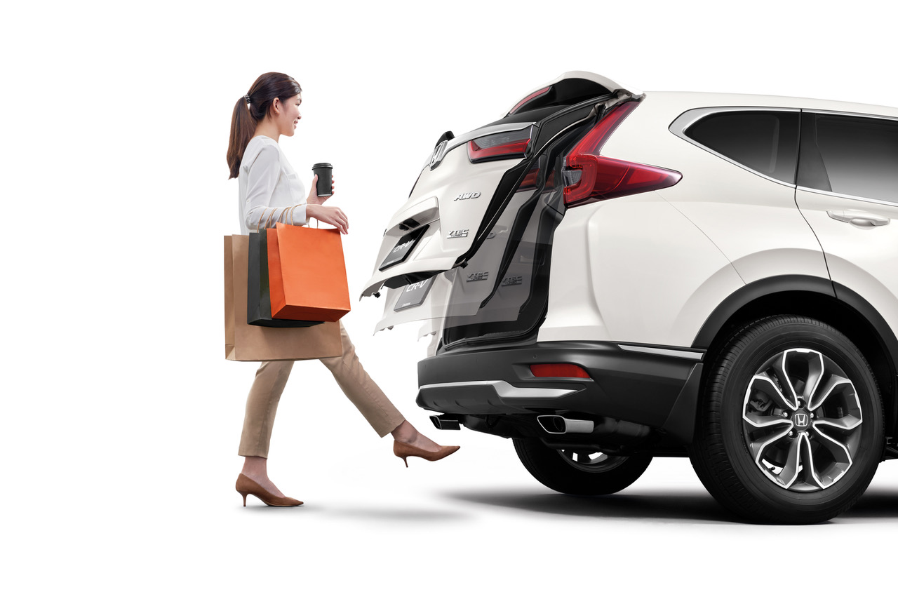 - Ada but elektrik bebas tangan yang boleh dibuka dengan menggerakkan kaki bawah bampar belakang untuk buka atau tutup automatik.