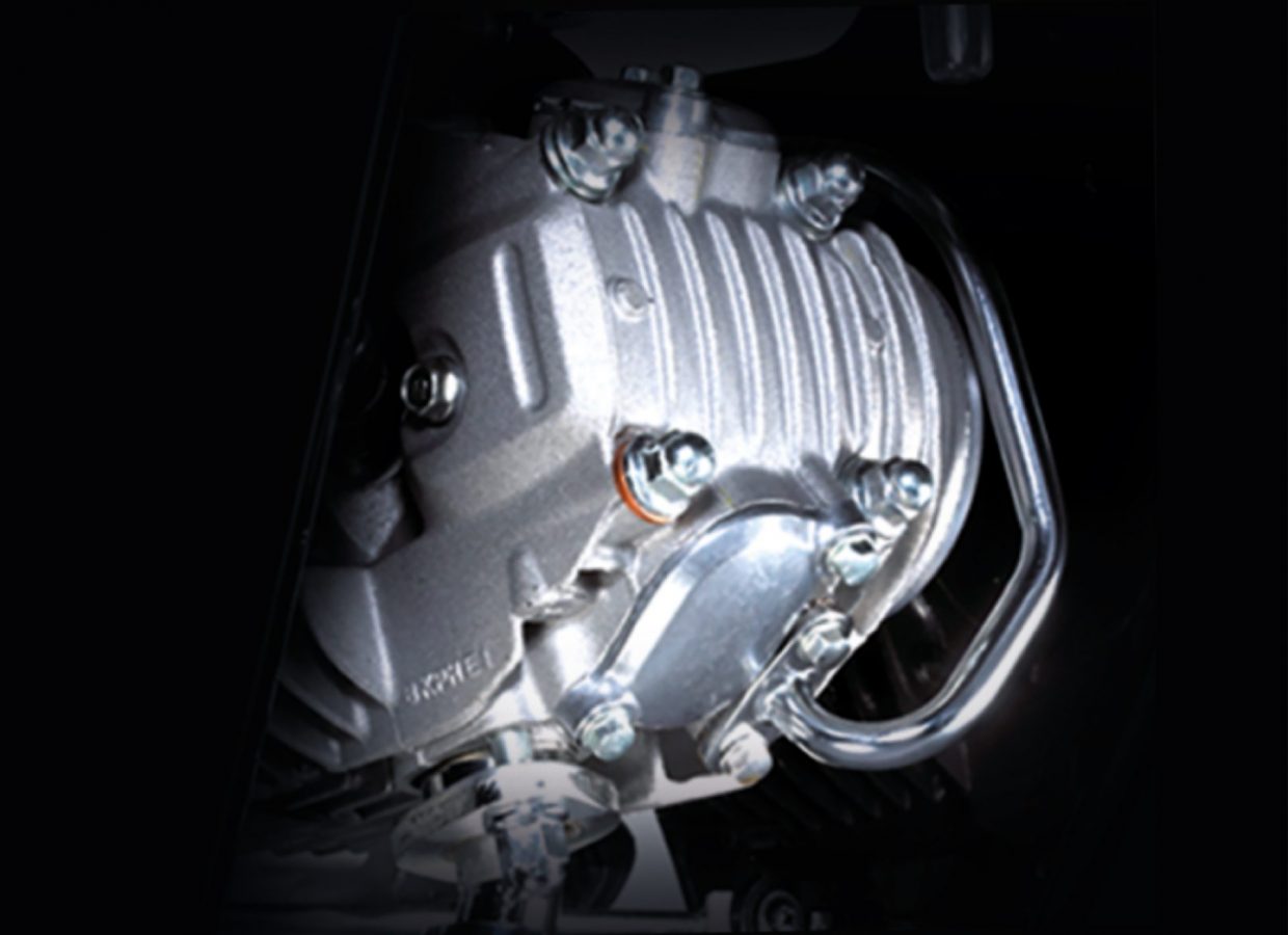 - Dijana enjin 4-lejang silinder tunggal 124.85cc OHC penyejukan udara dengan tranmisi klac basah multiplat 4-kelajuan.