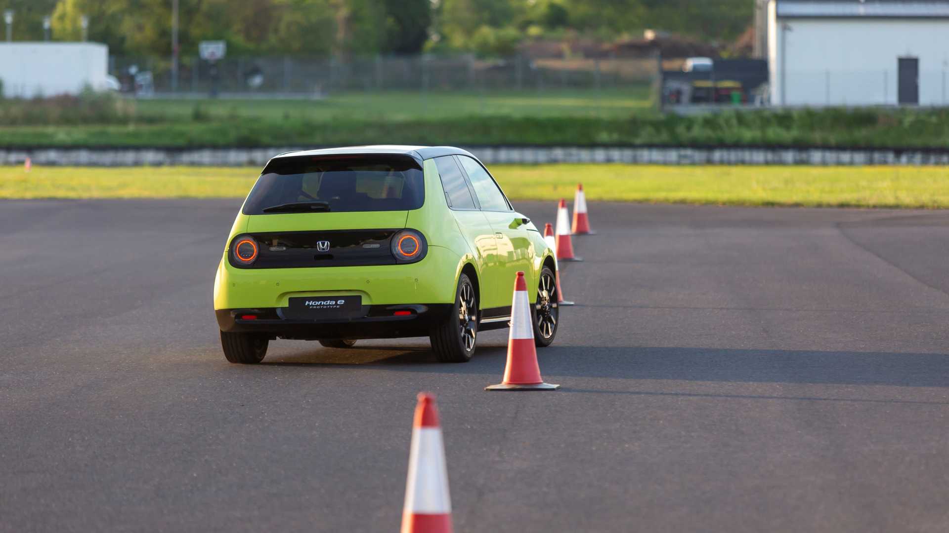 Honda e bukan setakat kereta mesra alam, malah pasukan jurutera Honda memberikan perhatian khas dalam aspek dinamik pemanduan supaya pemandu dapat merasai pengalaman memandu yang menyeronokkan. Kereta elektrik ini juga dibikin untuk lebih stabil dan mempunyai pengendalian yang baik dengan nisbah kuasa dan berat 50:50. Saiz kereta lebar, tetapi kompak, manakala overhang depan dan belakang direka pendek.