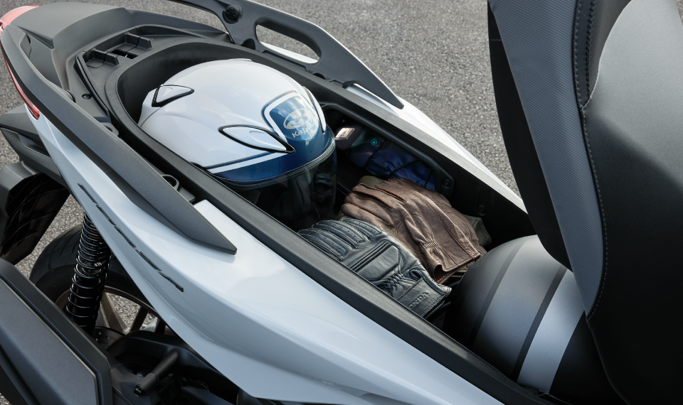 - Kotak simpanan bawah pelana 48 liter boleh memuatkan dua helmet dan lebih praktikal dengan lampu.