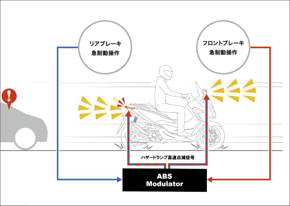 - Dilengkapi ciri keselamatan seperti seperti Sistem Brek Anti-Kunci (ABS) dan Signal Henti Kecemasan (ESS) yang diaktifkan apabila modulator ABS mengesan situasi membrek mengejut.