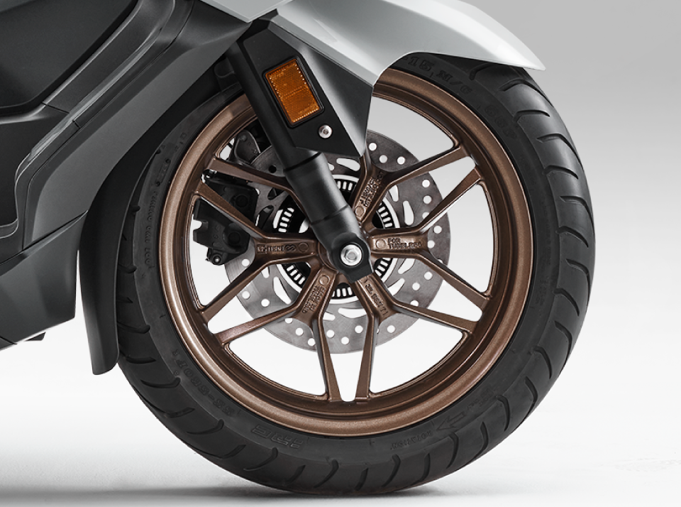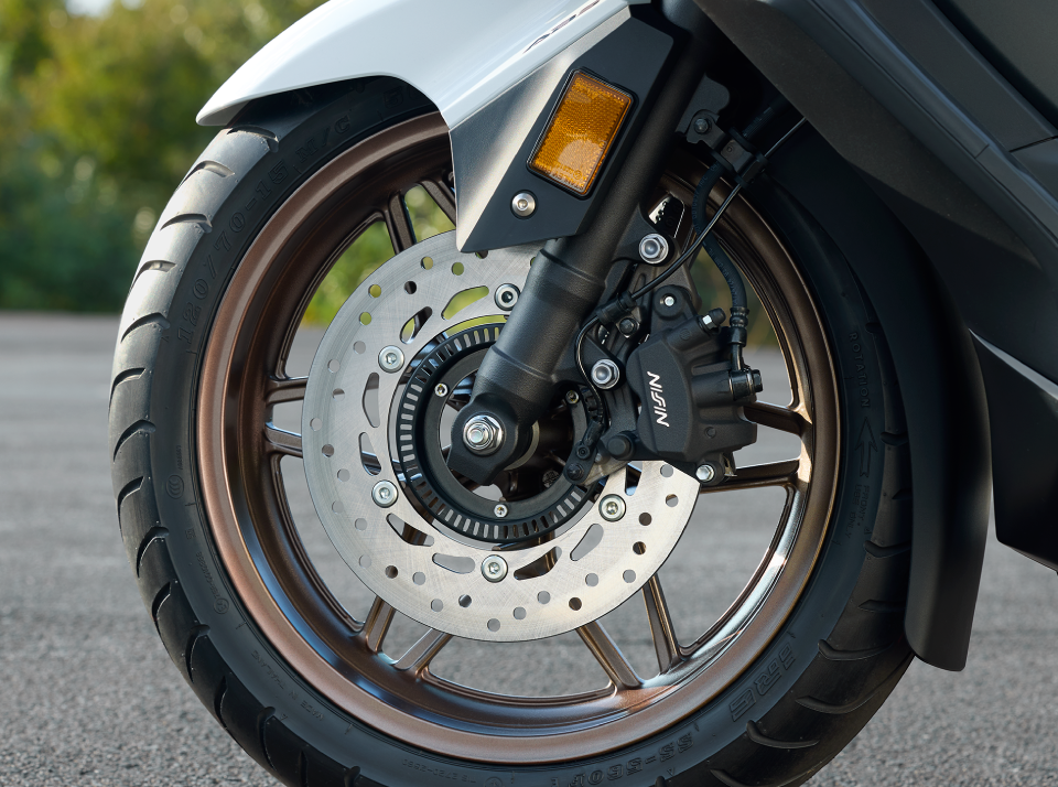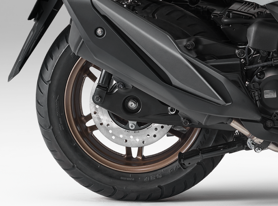 - Rim 15 inci dengan tayar 120/70 (depan), dan rim 14 inci dengan tayar 140/70 (belakang).