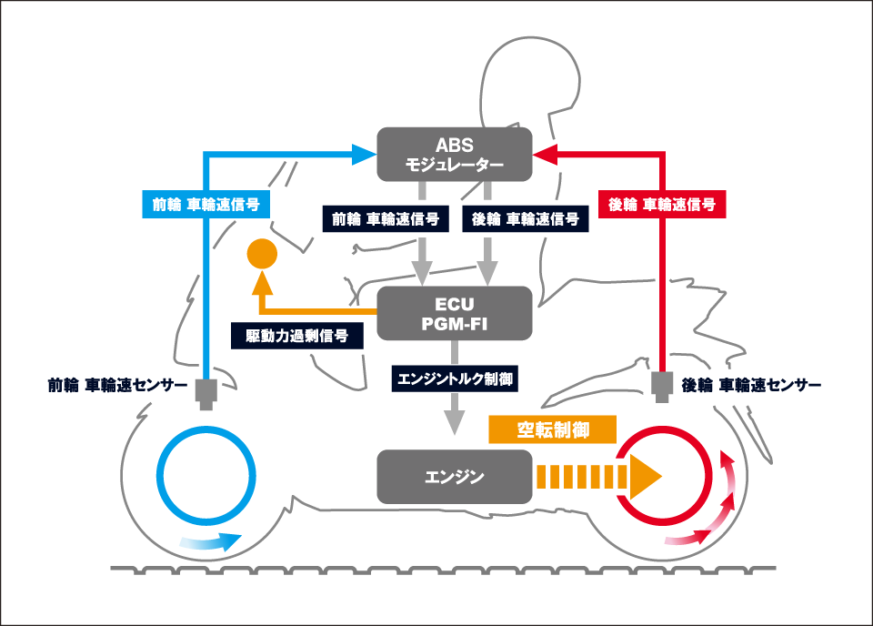 - Sistem HSTC berfungsi melalui unit kawalan elektronik (ECU) yang mengawal jumlah suntikan bahan api apabila sensor halaju roda mengesan kadar gelinciran roda belakang melebihi tahap tertentu yang dipilih penunggang. Penunggang juga boleh memadamkan fungsi HSTC menerusi suis hendal kiri selain diaktifkan.