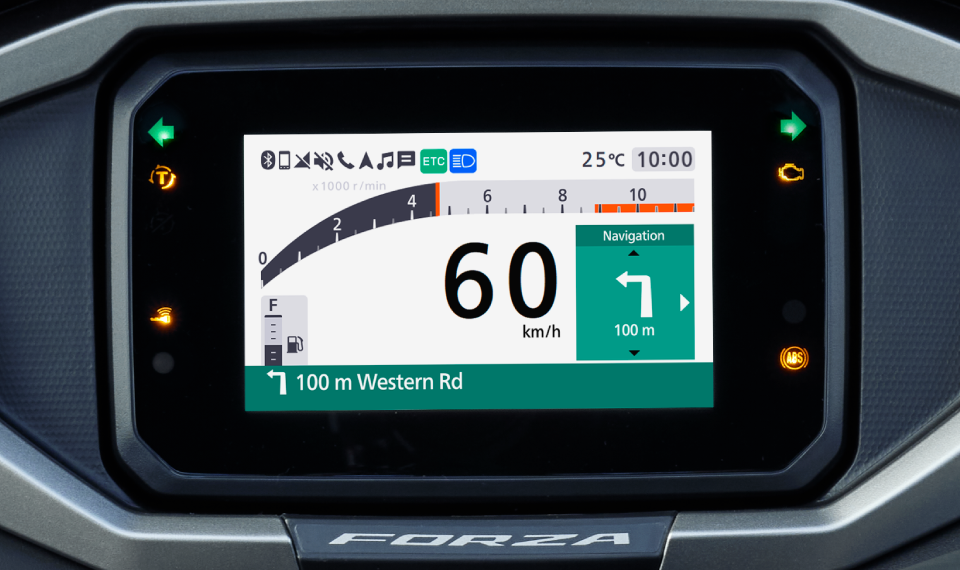 - Panel meter warna penuh 5 inci memaparkan pelbagai maklumat dalam format mudah dibaca.