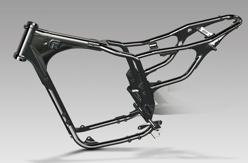 - Frem keluli jenis kradel semi-ganda (semi-double cradle) membantu imbangan mendatar dan menegak serta ketegaran torsi (torsional rigidity). Rekabentuk frem ini juga memposisikan enjin lebih rendah untuk menguatkan pusat graviti. Swingarm segiempat membantu mengurangkan kesan gegaran ketika menunggang.