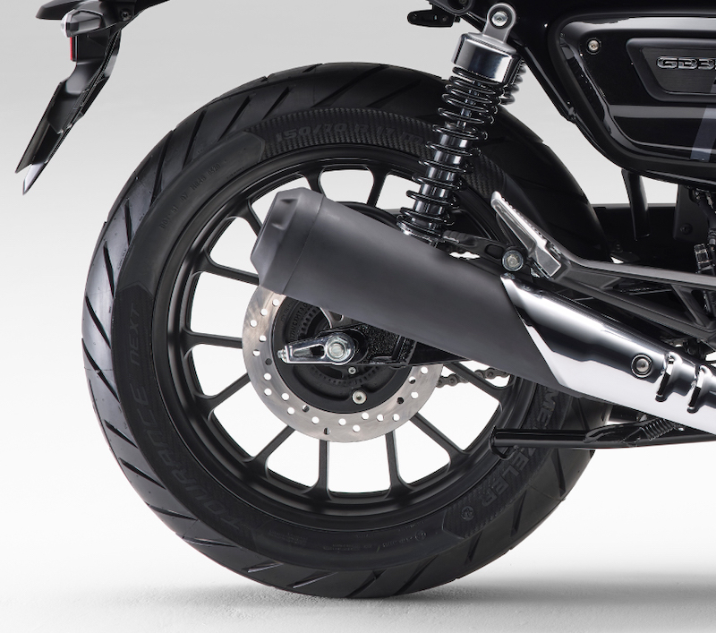 - Siri GB350 menampilkan lampu belakang LED penuh gaya retro. GB350 S pula menggunakan bentuk lampu signal belok moden yang tirus, manakala lampu brek belakang diletakkan di hujung bawah pelana.