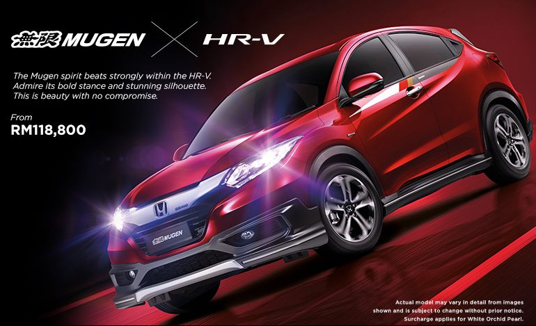 Honda Malaysia hanya mengeluarkan 1,020 unit HR-V Mugen dengan varian V sahaja pada harga RM118,800 (tanpa insurans, termasuk GST) dalam warna Dark Ruby Red Pearl (merah), manakala pelanggan yang memilih White Orchid Pearl (putih) perlu menambah RM300.
