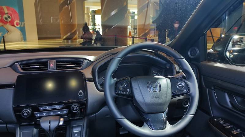 - Kabin juga serba hitam seperti kerusi dengan material kulit dan sulaman Black Edition. Aksen kemasan Black Wood Grain juga dikenakan pada papan pemuka, manakala logo Honda pada stereng kini dalam krom gelap.