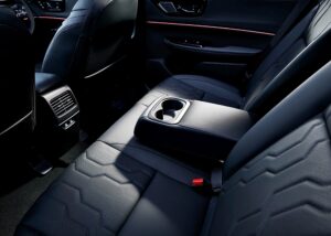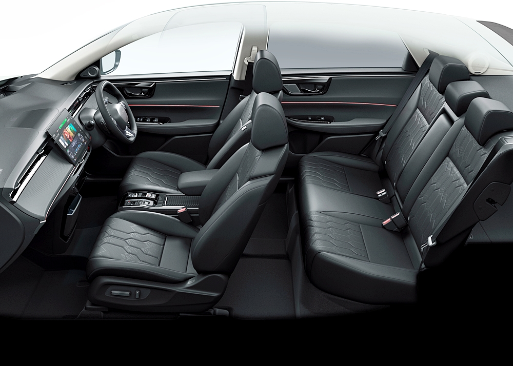 - Bentangan Dalaman: Konsol tengah tidak memisahkan kerusi pemandu dan penumpang bagi membolehkan akses walk-through. Kerusi belakang mempunyai ruang kaki luas dan fungsi sandaran belakang.