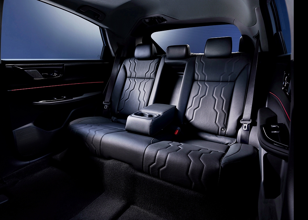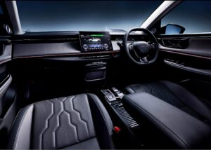 Bahagian dalaman menggunakan bahan sentuhan lembut bermutu tinggi dan lampu ambien LED pada panel instrumen dan pintu.