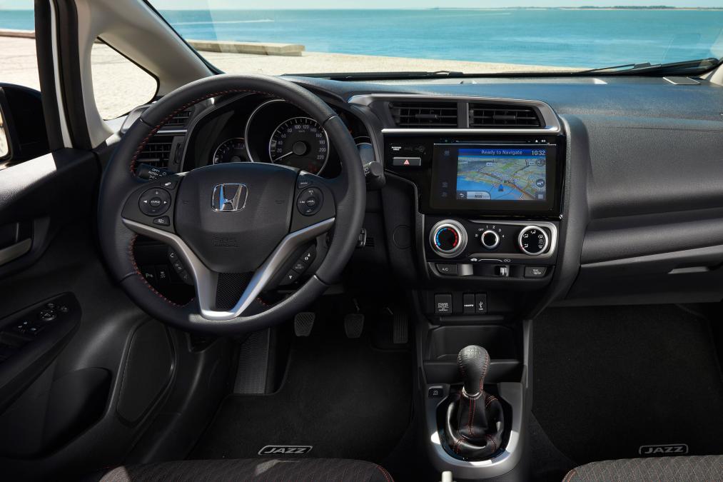 Ruang dalaman Jazz Sport diberikan perincian jalur jingga unik pada kerusi, termasuk sulaman jingga sekitar kabin, roda stereng kulit, dan tombol gear kulit.