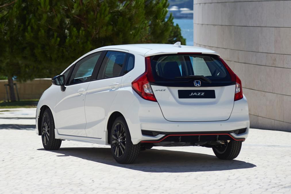 Jazz Sport turut diserikan spliter depan dan difuser belakang yang dikemaskan aksen merah diilhamkan Civic Type-R, lampu kabus depan, skirt sisi baharu, spoiler lid hatch dan rim aloi 16-inci hitam berkilat, termasuk lampu utama LED.