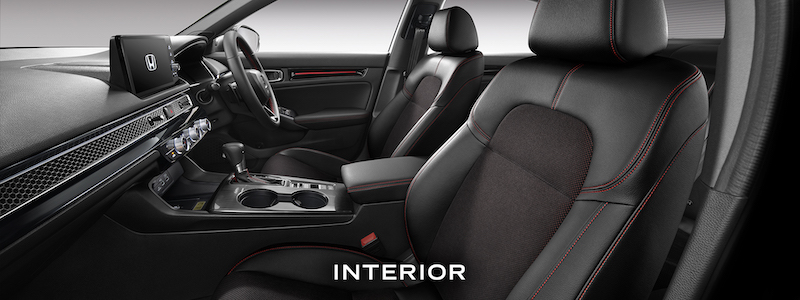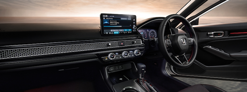 - Papan pemuka Civic 2022 nampak lebih moden berbanding Civic FC dengan aplikasi panel panjang bercorak sarang lebah untuk menutup ventilator penyaman udara. Skrin infotainmen pula diposisikan dalam keadaan timbul atas papan pemuka.