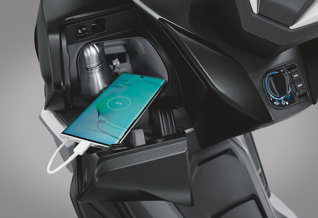 - Ruang simpanan bawah pelanan boleh memuatkan dua helmet dan barangan peribadi lain.