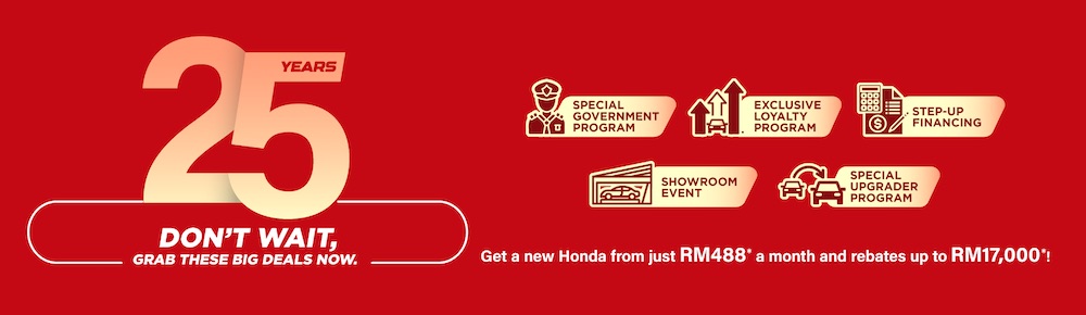 SEMPENA ulang tahun ke-25 kehadiran Honda di Malaysia, Honda Malaysia melancarkan kempen istimewa '25th Year Anniversary - Because of You' yang berlangsung 1 Oktober hingga 31 Disember 2025.
