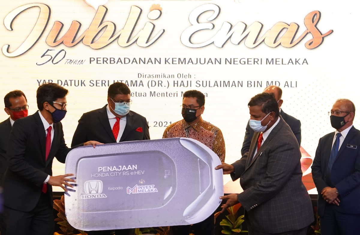 HONDA Malaysia menyerahkan Honda City RS e:HEV kepada Invest Melaka Berhad (IMB) sempena sambutan ulang tahun Perbadanan Kemajuan Negeri Melaka (PKNM) yang ke-50. Penyerahan itu dilakukan dengan kerjasama SOCAR Mobility Malaysia Sdn Bhd.